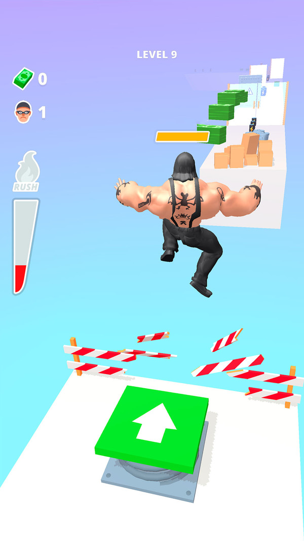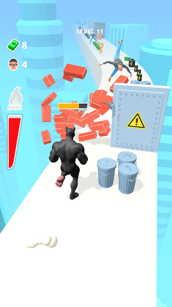 1、玩家需操控角色在悬浮天空、监狱塔等多样场景中奔跑,通过左右移动、跳跃、下滑等操作躲避障碍物;