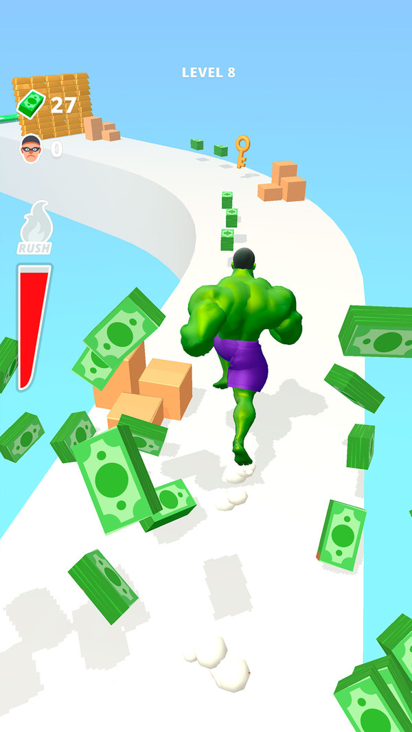 2、移动自己的角色,吸收赛道上的各种物品,让你变得更加强壮;