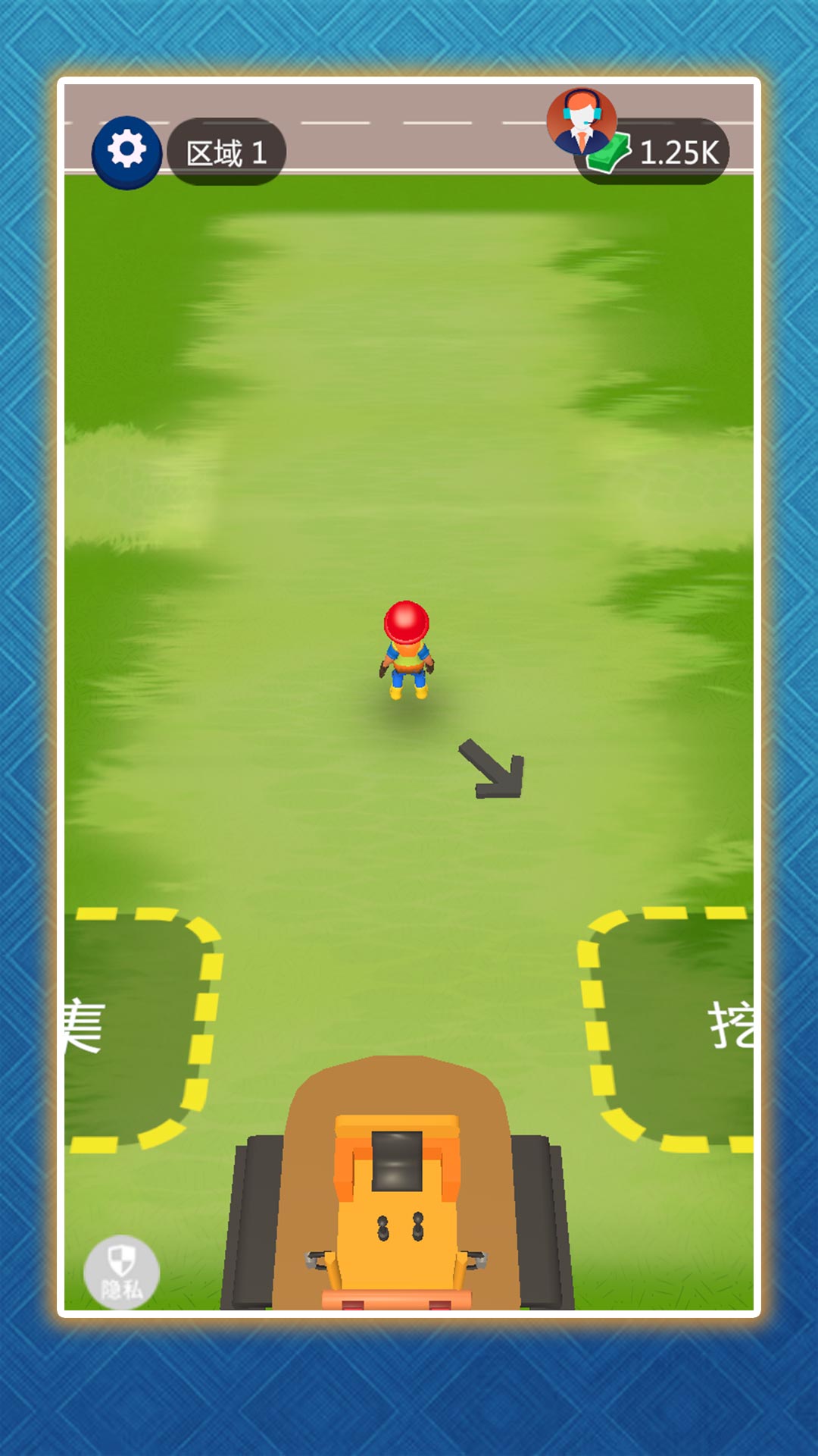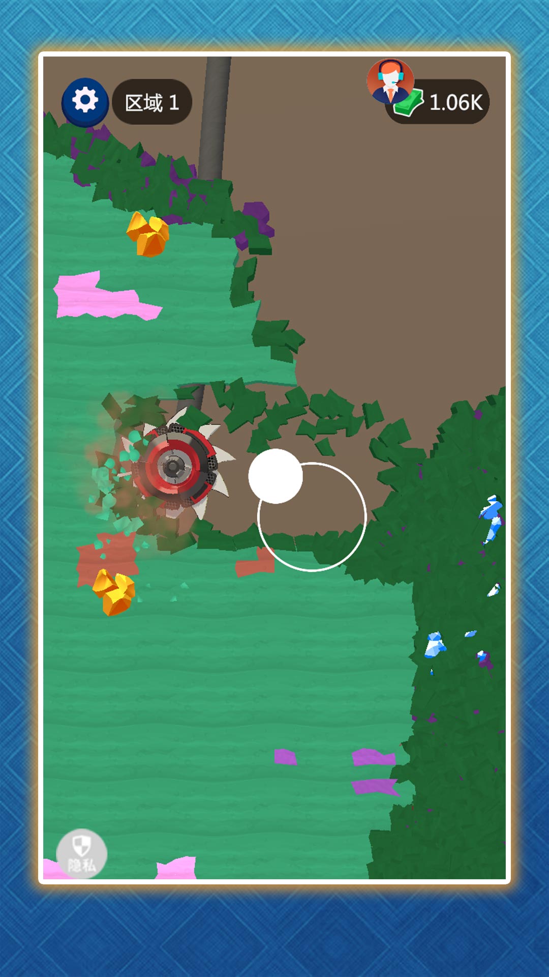 1、在绿色草地上规划开采区域,使用采矿车和钻头挖掘紫色矿石和黄金资源,体验挖矿的乐趣。