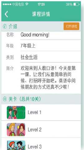 3、人教口语app以最新人教版教材为基础,融合中美教学专家精心原创的拓展内容,集口语对话、智能评测、闯关游戏和方法交流于一体。
