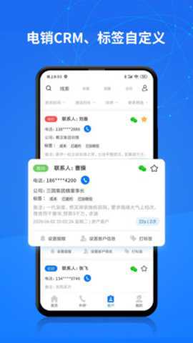 2、另外它还具有CRM能力,包括移动CRM、标签自定义、收藏、跟单等功能,让电销员可以更好地管理客户信息,提高客户满意度。