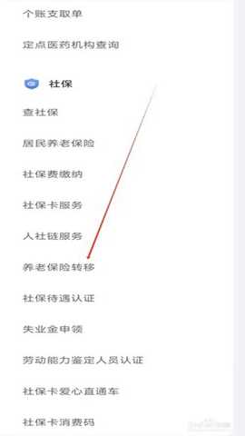 选择【养老保险转移】选项,即可完成查看。