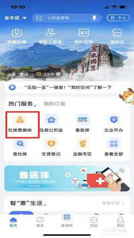 第一步:打开【爱山东】APP,点击【社保费缴纳】。