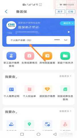 最后点击选择【个人账户余额】选项,就可以查询到医保当前对应的余额了。
