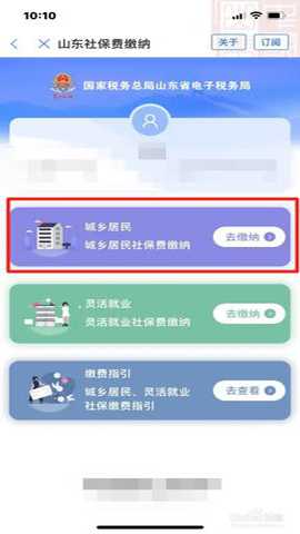第二步:在社保费缴纳页面点击【山东省社保费缴纳】下面的去缴纳。