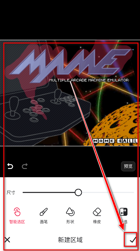 7.用手指在要抠的物品上拖动选择抠图范围,然后点击右下角的勾号即可。