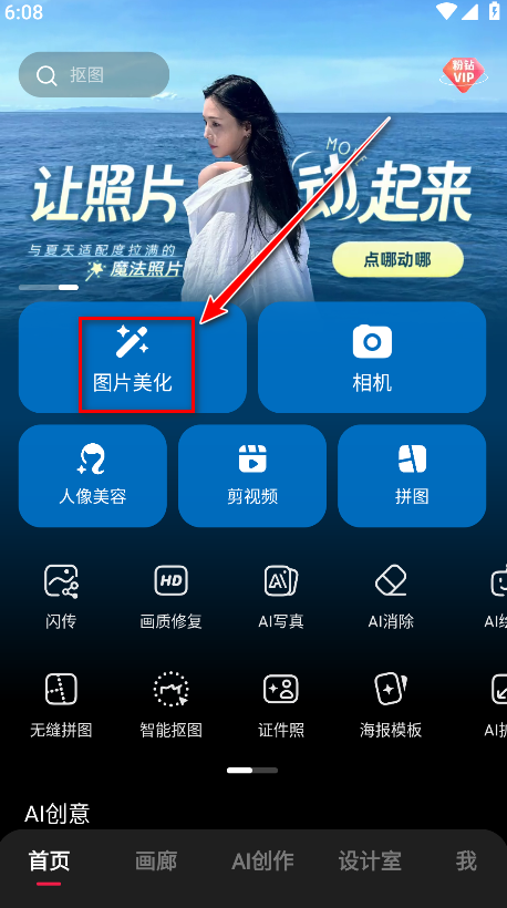 1.打开美图秀秀,点击图片美化。