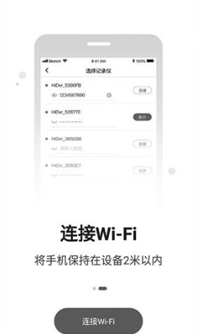 3、将手机 wifi 连接至 app 专属 wifi,名称含车录字样,密码为 12345678,连接成功即可使用。