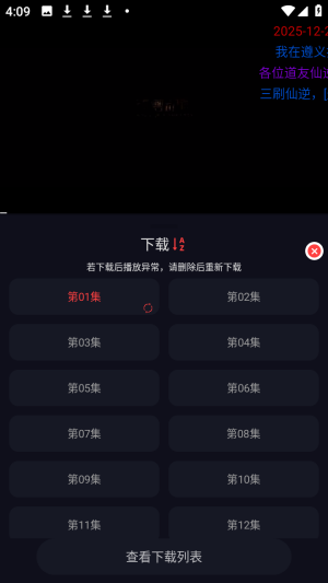 3、选择要下载的集数等待下载完成即可,可以在首页右上角查看下载进度哦。