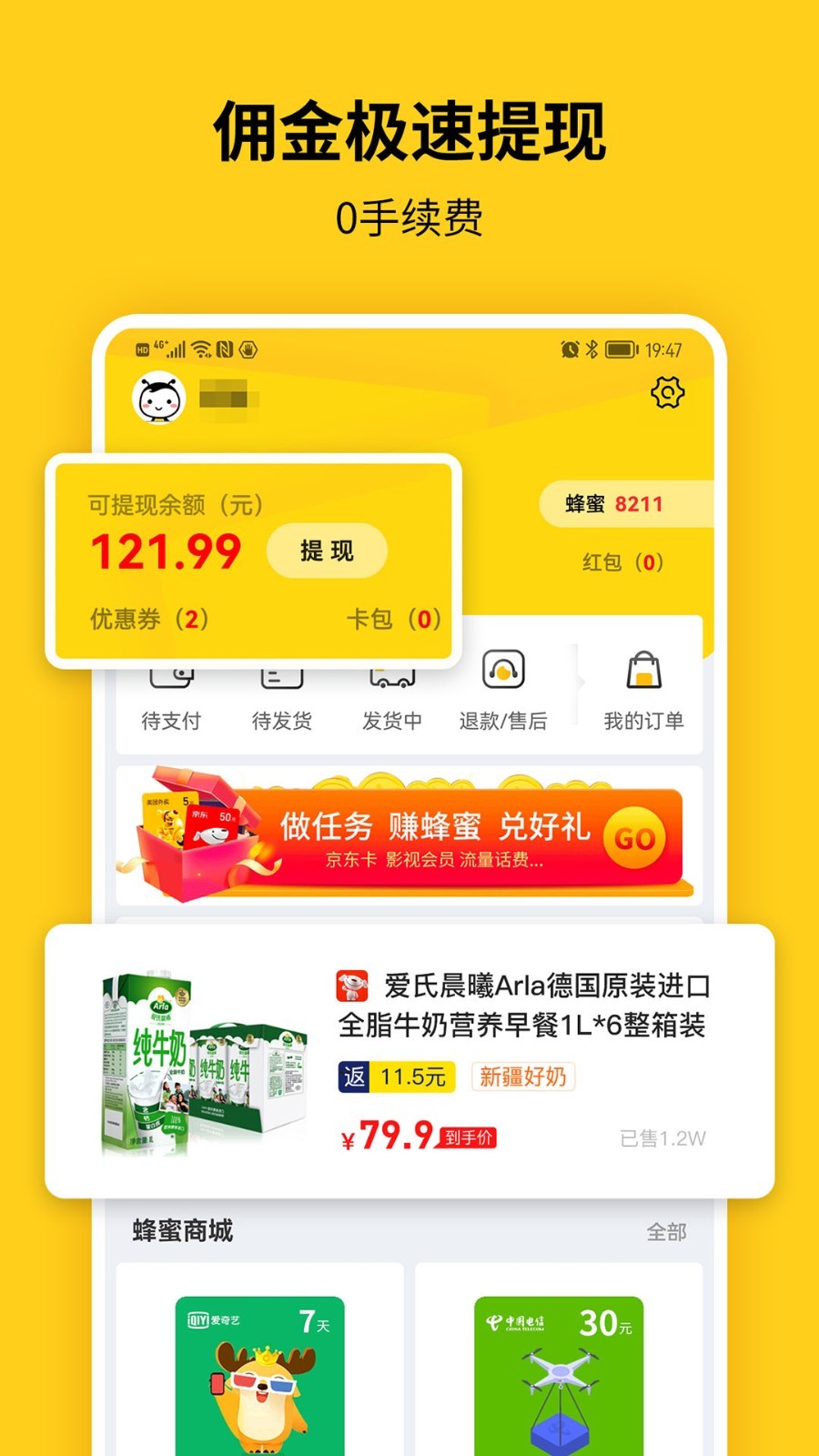 蜂助手精选全网折扣好物,返现高达90%,各类需求在这里都可以得到满足,佣金极速体现,手续费只需要0元,全网购物、优惠充值的一站式生活服务平台,希望能够带给您最好的体验,旨在为用户提供优质的服务!各位小伙伴们千万不要错过