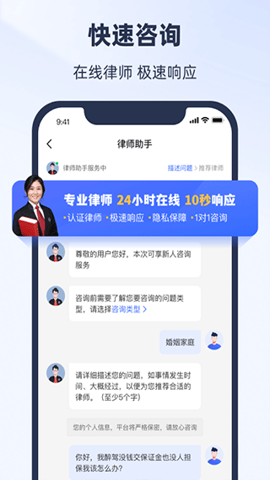 法临法律咨询是一款专业的法律咨询软件,为用户提供便捷、高效的咨询体验,无论是民事、商事、刑事、行政还是执行等各类案件,用户都可以通过该软件获得专业的指导和支持,不仅提供基础的知识查询,还汇聚了众多专业律师,用户可以在线咨询,获得及时的解答和建议。