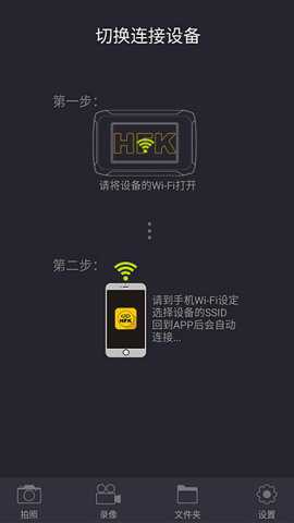 2、为了使用这款app,我们需要将设备的WiFi打开,并在手机的WiFi设定中选择设备的SSID,回到app后,它会自动连接上行车记录仪。