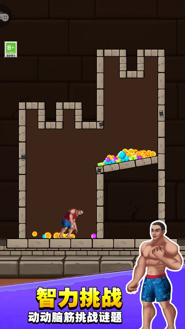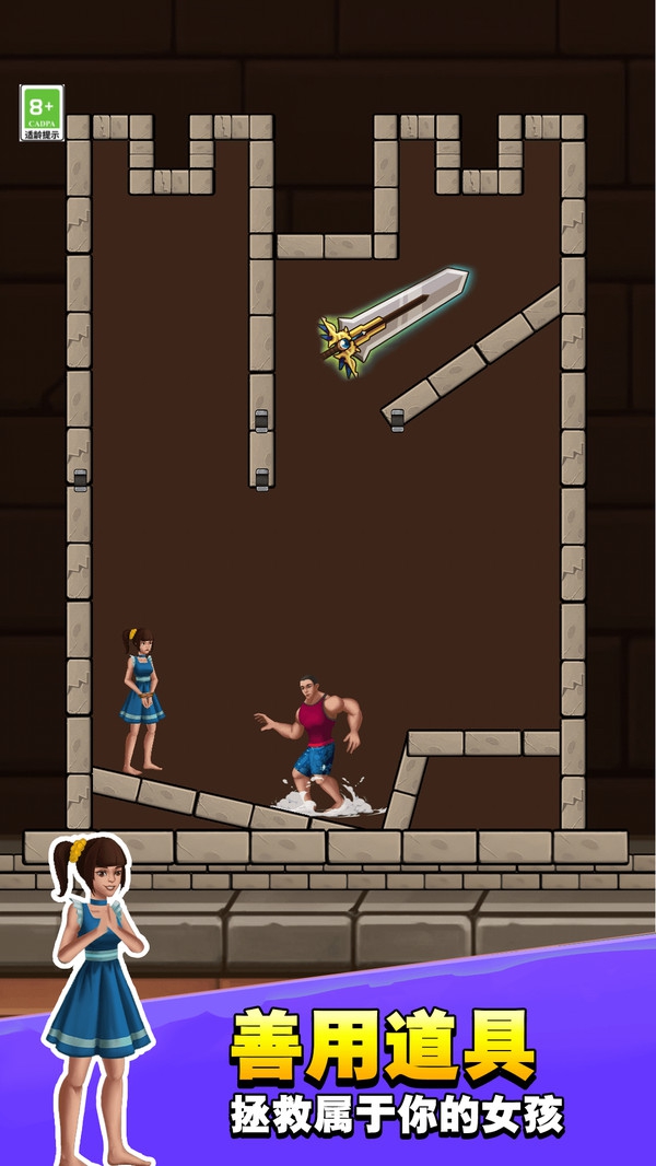 1、通过触摸拖拽元素构建通道,帮助主角避开障碍,完成逃脱任务。