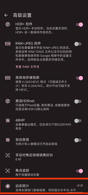 3、随后我们就可查看到谷歌相机中的动态照片该选项了