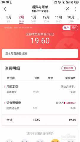 这样就可以查看每月的话费账单情况了。