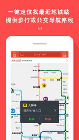 2.查看最近的地铁站点、或是直接搜索目的地;并有起点/终点到地铁站的交通指引。