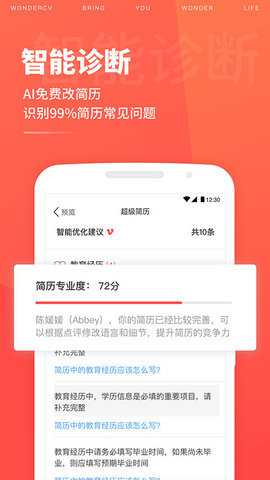 超级简历是一款由北京超职科技有限公司开发的简历制作软件,软件中为用户们提供了大量的简历模板可以让用户使用,帮助用户快速的制作出专业化的简历,还提供了有用的职业建议和指导,帮助用户写出令人印象深刻且符合行业标准的简历简介,让用户们的面试通过几率变得更高。