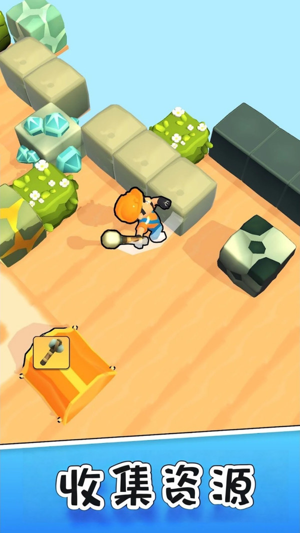 岛屿迷踪游戏里面的地图需要玩家自己去探索,所有角色没有到过的区域,都被迷雾遮住了!角色走到哪儿都会带着一把大锤子,有些石头挡着路了,就可以直接用锤子砸开,有时候里面还会掉落一些装备和资源。想要在岛屿里面生存,玩家必须不断的找寻新的资源!