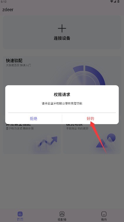 4、按照系统提示开启手机蓝牙权限,应用将自动搜索周边可用音频设备并完成连接。