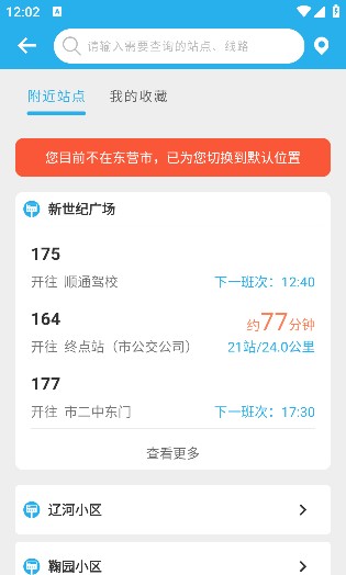 3、附近站点:自动定位当前位置,展示周边站点与可乘坐线路。