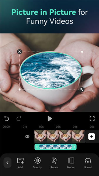 5、画中画模式:允许在主线视频上叠加其他影像素材,灵活调整位置与透明度,创造出双重曝光或评论解说等高级视觉效果。