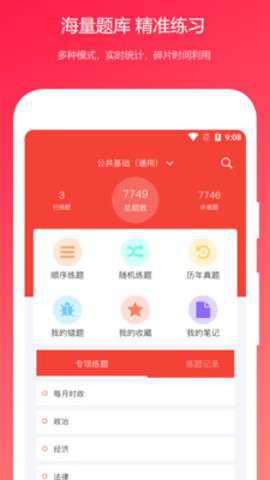 1、该应用程序还提供了随机测试、专项练习和模拟考试等功能,用户可以根据自己的需求选择相应的功能进行练习和测试。