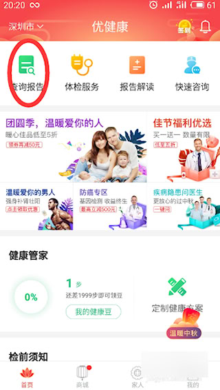 优健康怎么用体检号查询体检报告