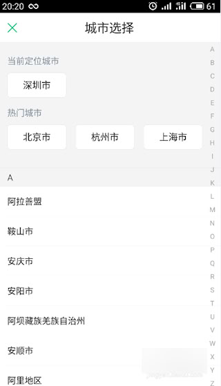 3、 注册激活后,选择所在城市,进入下一步。