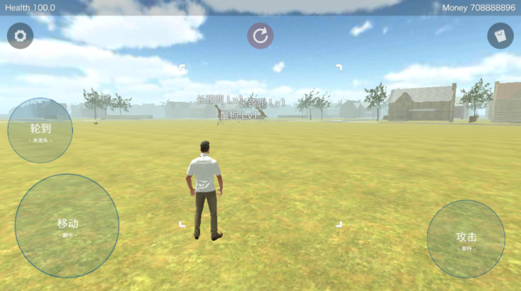 3、移动上方有个叫做轮到的按钮,其功能是转到身后,是一个用于防止怪物袭击的按钮,打死动物就需要看看前后是否有怪物来袭。