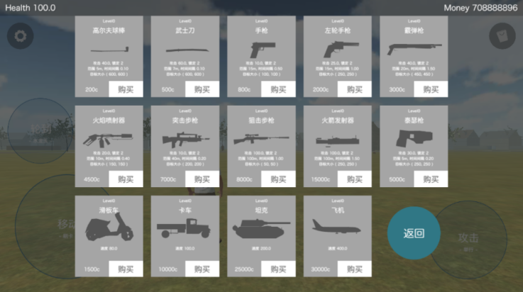 2、击杀任何生物都会获得金钱,在右上角可以使用金钱来购买装备,越贵的武器越好用,不过游戏操作麻烦,选择一个攻击范围大的武器会比较好。