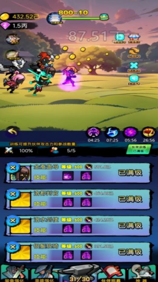 2、可以升级角色的生命、攻击、防御等属性,还可以强化技能效果,培养出独一无二的专属英雄。