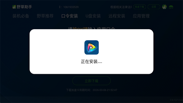用户无需使用U盘,也无需进行复杂设置或手动查找安装包。只需将本应用安装至电视,打开后输入对应的口令码,即可自动识别目标应用,并实现一键下载与快速安装。全程智能适配设备环境,自动完成部署,显著降低安装门槛。