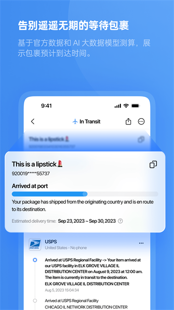 4、 状态推送:提供物流异常提醒服务,当包裹状态发生变化或出现延误时,及时通知用户掌握最新情况。
