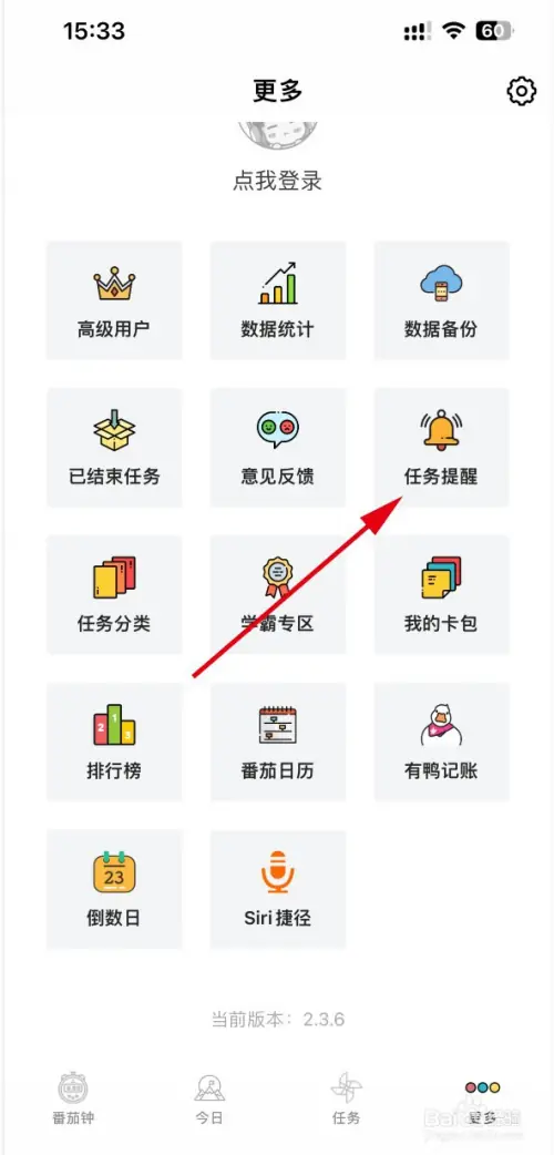 2、在跳转的功能页面中,点击右上角的【任务提醒】按钮,进入提醒设置界面。