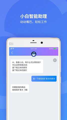 2、它提供了精准销售数据看板、进存销数据、报价查询、公告、办公好物商城等服务功能,为销售和会计行业提供了移动好帮手。