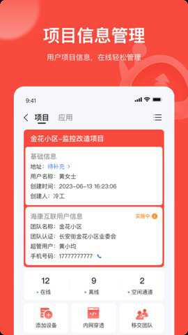 4、海康互联Pro还支持项目的快速创建、维护、业主绑定以及设备的添加、激活等功能。