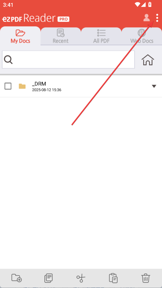 1、打开ezPDF Reader,点击右上角的三点按钮