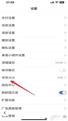 进入到设置页面,找到并点击“字体大小”。