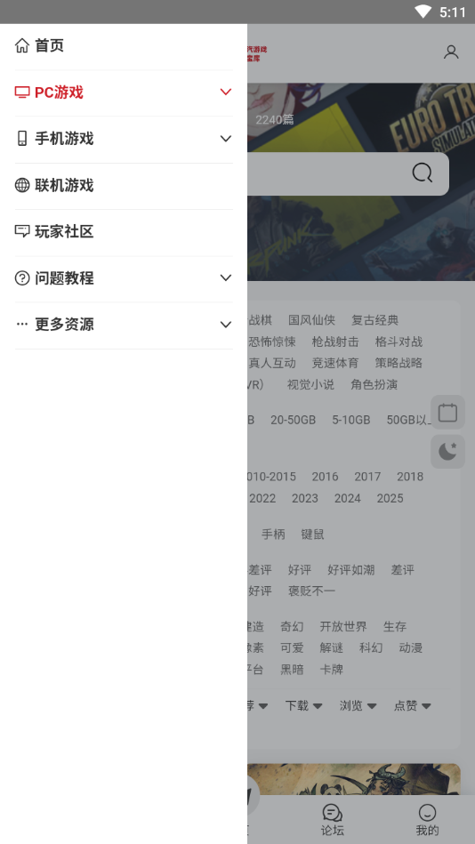 1、下载安装蒸汽宝库平台后进入首页,在页面中选择电脑游戏或手机游戏分类。