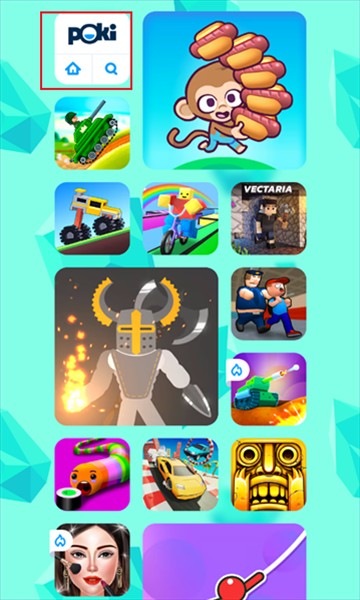 1、打开Poki小游戏大全软件,在指定位置即可搜索想要游玩的各类小游戏。