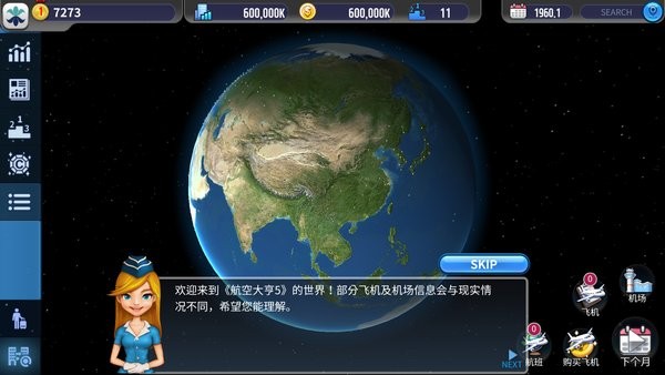 市场上会有几家航空公司,他们生成的飞机分为客运型和货运型,小型的飞机价格便宜航行距离比较近,而更远的航线需要购买能够航行更远的大飞机。不过航线要是超出现有飞机的航行距离的话,我们还可以设置中转航行路线。