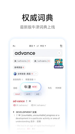 5、 权威查词:内置多部经典词典资源,提供专业释义、词根解析及丰富例句,确保查询结果准确可靠。