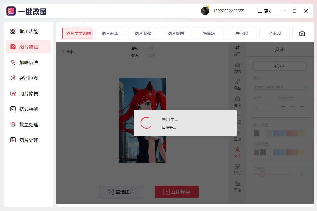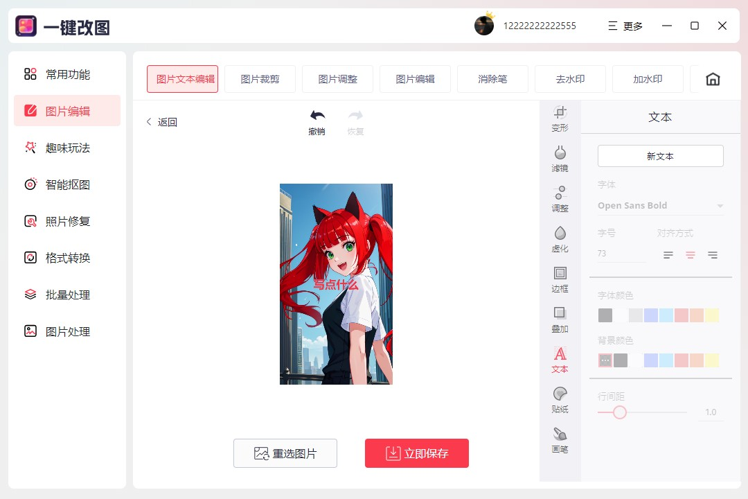 4、编辑操作全部完成后,点击下方 “立即保存”,即可将图片保存到本地。