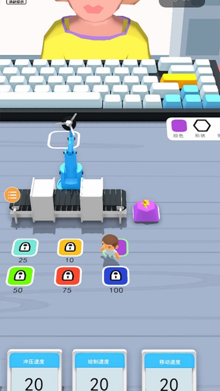 4、往后你可以解锁新的颜色、形状和图案,也可以用赚取的钞票对角色的效率进行升级。