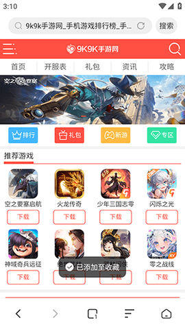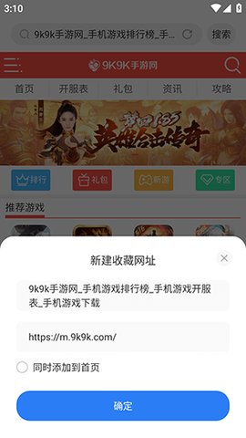 3、还可以通过点击下方的新建收藏功能,将常用网页添加至收藏页面,方便日后访问。