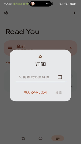 2、可以选择复制订阅源或站点链接进行搜索,也可以直接导入OPML文件,快速完成书源的添加。