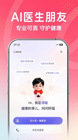 蚂蚁阿福是一款医疗健康服务应用,提供全方位的健康管理与咨询服务,融合先进技术与专业医疗资源,可通过文字、语音或图片形式随时提问,获得专业的健康解答与阶梯式建议,提供在线问诊、预约挂号及购药服务,覆盖从日常健康监测到线下就医的全流程需求。
