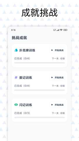 记忆贝贝是一款专业的记忆力提升工具,帮助用户通过多样化的训练模式有效提高记忆能力,为用户提供了丰富的训练选项,包括数记训练、闪记训练、扑克牌训练以及记忆宫殿等多种形式,可以根据自己的需求和兴趣选择相应的训练项目,还设有记忆成就挑战,鼓励用户在轻松愉快的氛围中完成训练目标,提升自我。