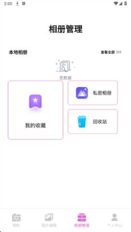 3、应用内部的设计也十分人性化,集成了相机拍照、照片编辑和相册管理等多项功能。