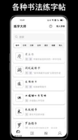 1.手写字体:练字大师提供各种手写字体供用户练习。